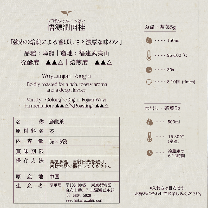 三大産地のひとつ、悟源澗産の肉桂は、甘く豊かな香りと深い余韻が魅力。
